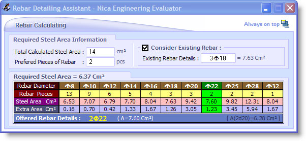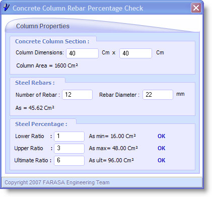 • Concrete Column Min/Max Rebar  ابزاری برای تعیین میزان فولاد مینیمم و ماکسیمم ستونهای بتنی براساس سطح مقطع آنها