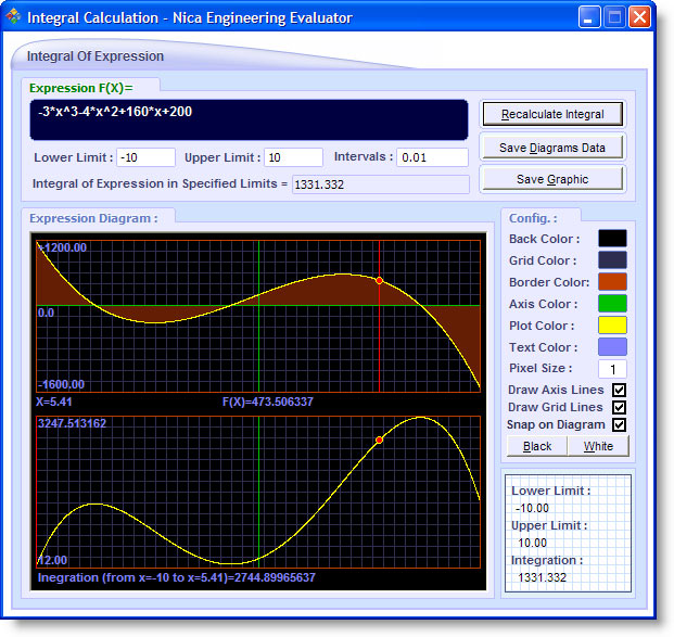 • Integral of Expression  ابزاری برای یافتن مقدار عددی انتگرال یک تابع بهمراه ترسیم تابع مورد نظر و تابع انتگرال آن